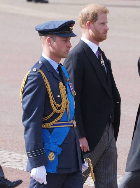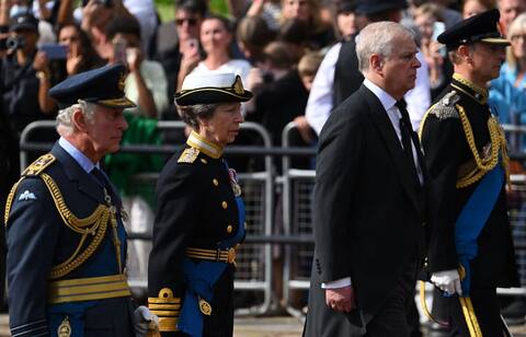 Lors d’une procession solennelle au déroulé millimétré, le cercueil en chêne a quitté le palais de Buckingham à 13H22 GMT, suivi à pied, au rythme de 75 pas par minute, par ses quatre enfants, le roi Charles, princesse Anne et leurs frères Andrew and Edward. Suivaient, côte à côte, les princes William et Harry, les deux fils de Charles aux relations difficile, qui s’affichaient ensemble pour la deuxième fois depuis la mort d’Elizabeth II jeudi dernier en Écosse.