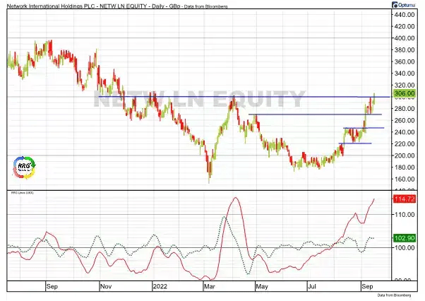 Electronic payments company Network International Holdings [NETW] is about to break above overhead resistance around 300. As this overhead barrier was created almost a year ago and has been tested four times as resistance, a break above it could potentially trigger an upward acceleration with plenty of upside potential.